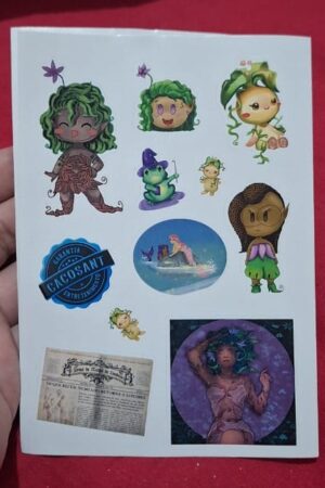 Cartela do tamanho 14,8×10,5 (A6) contendo 11 adesivos.